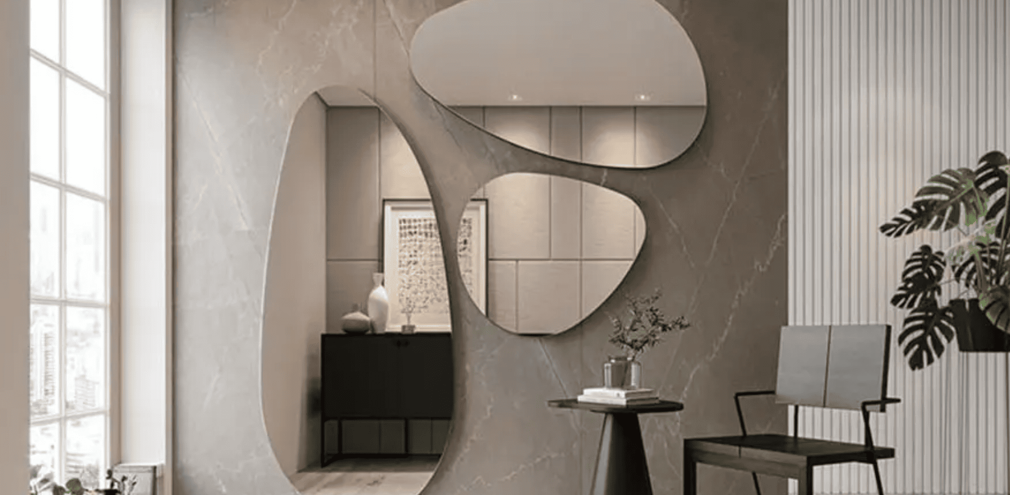Espelho Orgânico Aura 90x40 cm – Design Moderno com Suporte